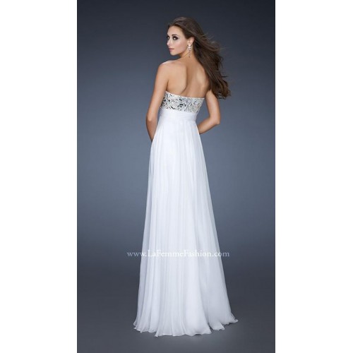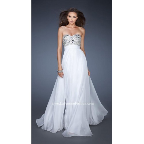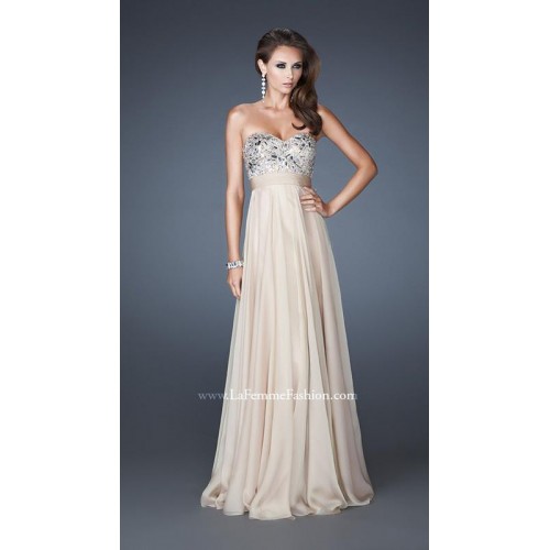 Breathtaking sweetheart neckline, empire chiffon gown, with glistening embellishment on the bodice. Ruching on the waistband and gently around the waist of the skirt that sweeps to the hem. Side zipper closure.