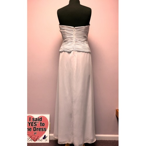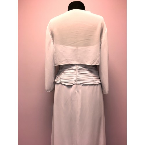 center ruffle design. The dress has a chiffon ¾ bolero jacket.